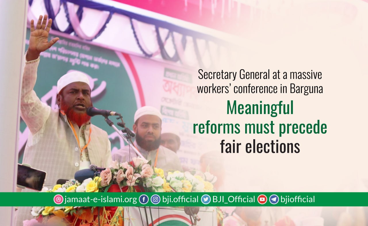 Speaking as the chief guest at a massive workers' conference organized by the district Jamaat at Barguna Town Hall field on Wednesday, February 26, Professor Mia Golam Porwar made these remarks.